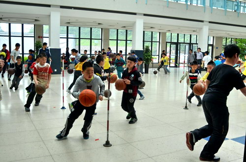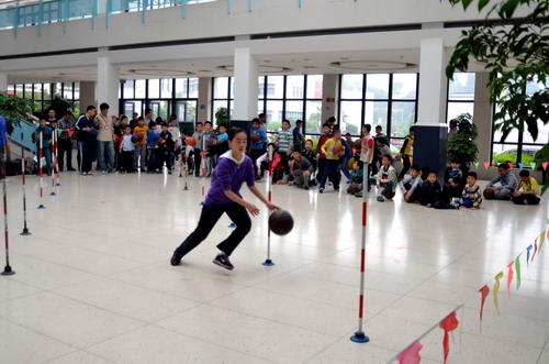 4月21日上午,籃球班60多名學(xué)員在老師們的組織下在中心一樓大廳舉行了趣味籃球賽活動。首先進行的是運球過障礙比賽,活動策劃,在裁判員的一聲哨響之后,學(xué)員們排成了一條長龍,沿著標桿魚貫而入式的運球表演贏得了在場家長學(xué)員們的陣陣掌聲。中場休息的時候,一位學(xué)員的轉(zhuǎn)球表演秀更是將比賽帶入了高潮。 本次活動,既為學(xué)習(xí)籃球的學(xué)員們提供了展示實踐的機會,更通過趣味的比賽方式增強了他們對籃球運動的興趣。