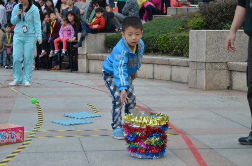 10月30日上午,“寶貝向前沖”2011年溫州十佳寶寶才藝大賽的第二項(xiàng)比賽活動(dòng)“寶貝闖關(guān)賽”在中心下沉式廣場(chǎng)進(jìn)行。本次比賽分大班、中班、小班三個(gè)組別,選手們需過投球關(guān)、比比誰捧的多、智慧樹、算數(shù)小專家、七巧板創(chuàng)意五關(guān),以獲得笑臉卡數(shù)量多少和闖關(guān)后速度的快慢來評(píng)選各級(jí)段十佳小選手。參加本次活動(dòng)的對(duì)象均由中心各項(xiàng)目推選出的優(yōu)秀學(xué)員組成。