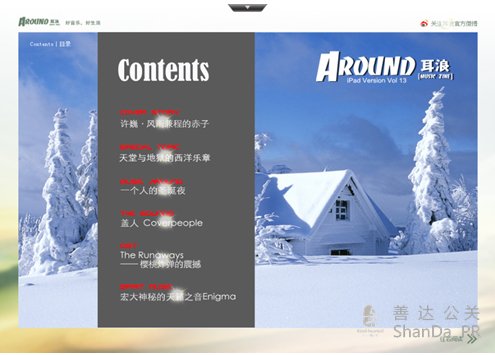 近日,由北京天智通達(dá)信息技術(shù)有限公司(簡(jiǎn)稱“天智通達(dá)”)為《耳浪》(Around)音樂(lè)雜志量身打造的耳浪音樂(lè)志的iPad與iPhone版客戶端炫靚上線,使得鐘情于《耳浪》的用戶可以隨時(shí)隨地享受音樂(lè)。