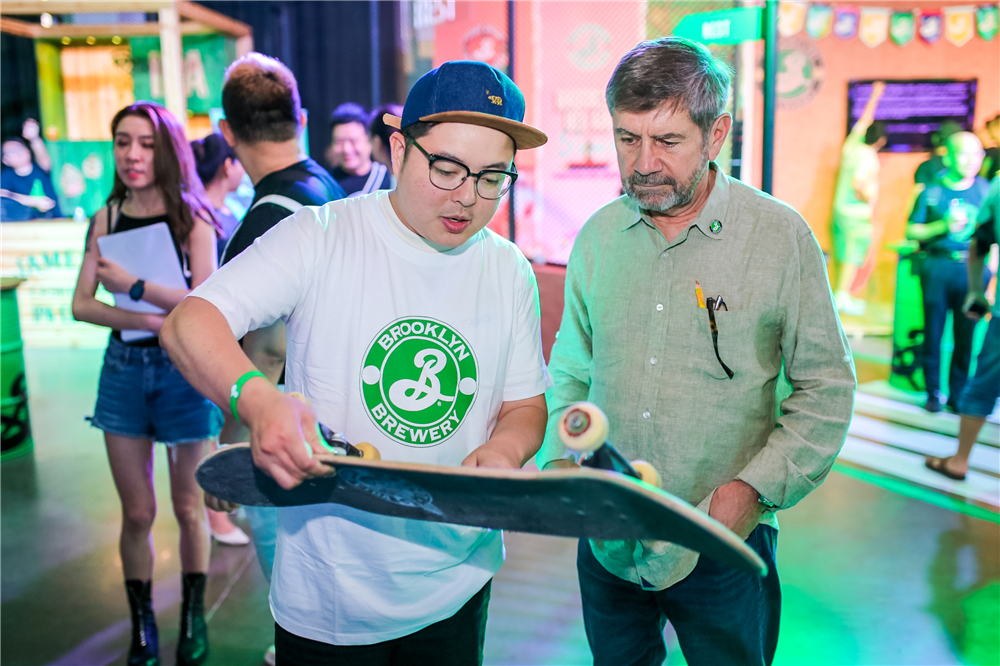 SPOT SKATE負(fù)責(zé)人為史蒂夫·欣迪(Steve Hindy)講解滑板