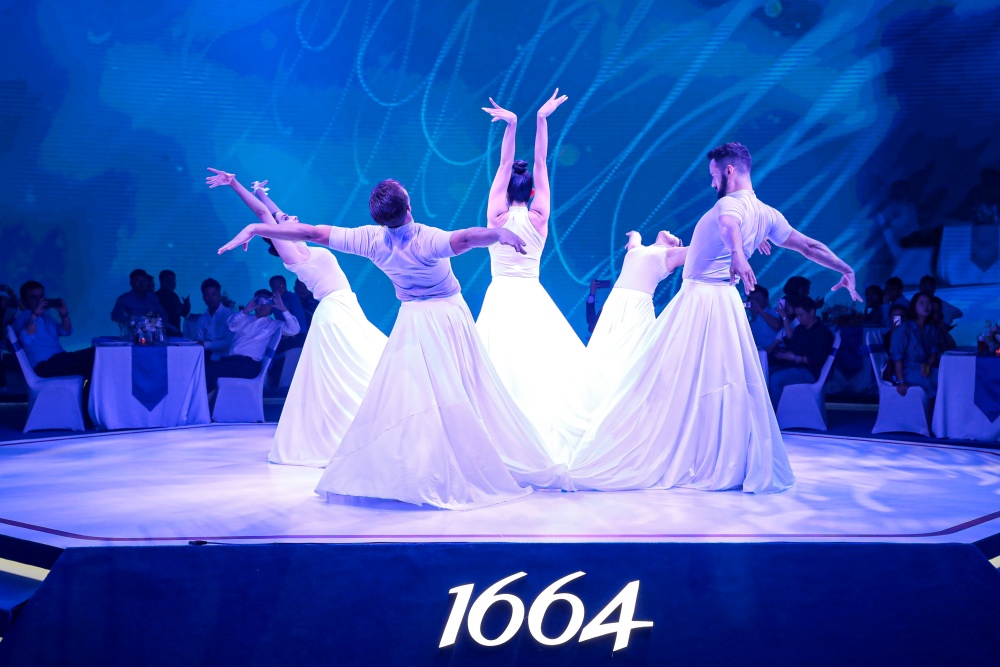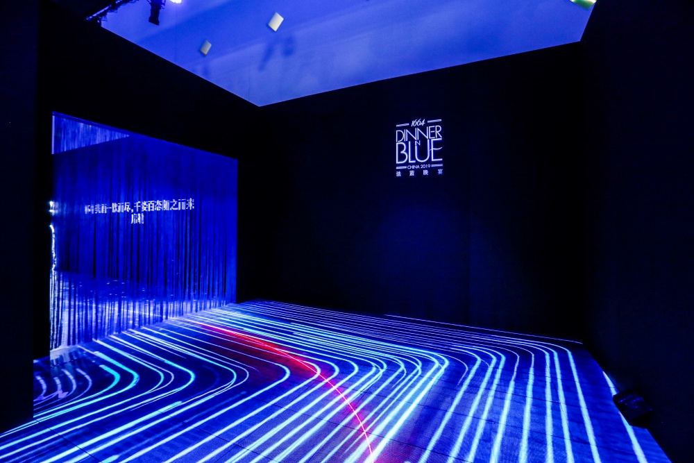 1664于上海世博創(chuàng)意秀場舉行,將法式生活哲學(xué)與晚餐美學(xué)理念巧妙融合,優(yōu)雅呈現(xiàn)以藍(lán)為名的流動盛宴。