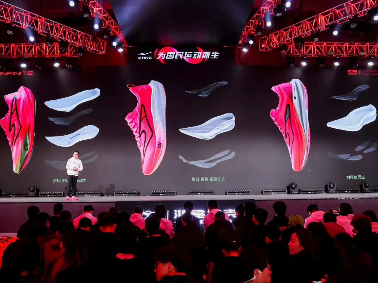 現(xiàn)場顯著展示了鴻星爾克“為國民運動而生”的全新品牌戰(zhàn)略,凸顯了品牌對國民運動需求的深度洞察和滿足。