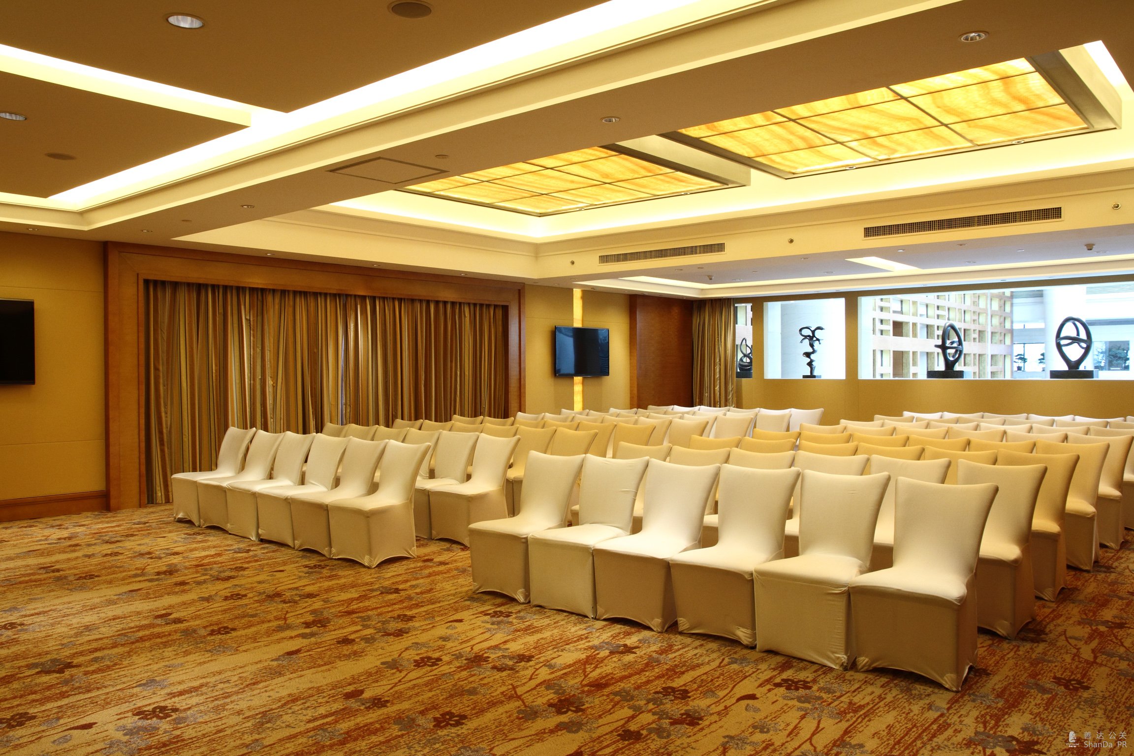酒店設施齊全,總計達 1410 平米的會議、宴會空間適合于各種場合,包括鉆石宴會廳和 13 個多功能廳,其中包括一間配有最先進視聽設備的高科技董事會議室。 提供無線因特網(wǎng)接入、文秘支持與服務。鉆石宴會廳一次最多可容納 800 人。 裝飾一番并擺滿精美的佳肴后,宴會廳也可變成理想的婚慶場所。 鑲嵌瑪瑙的吊燈外形猶如中國古代錢幣,中間呈方形,融巧妙變化于傳統(tǒng)吊燈之中。