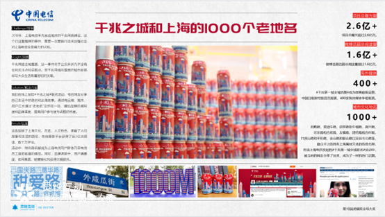 活動(dòng)引發(fā)了自媒體平臺(tái)1.6億次的圍觀、數(shù)十萬次熱評。伽利路路和愛迪生路、高興路和可樂路、打虎山路和平陽路、金山路和銀山路以及戰(zhàn)斗公路,數(shù)千個(gè)具有上海屬地文化的街巷名稱被大家發(fā)現(xiàn)、分享了,成為一時(shí)的熱門話題。電信的用戶滿意度、在網(wǎng)意愿、品牌感知、銷售轉(zhuǎn)化等得到大幅提升,國家官方媒體、行業(yè)及自媒體也同期發(fā)酵,給予了極高的評價(jià)。