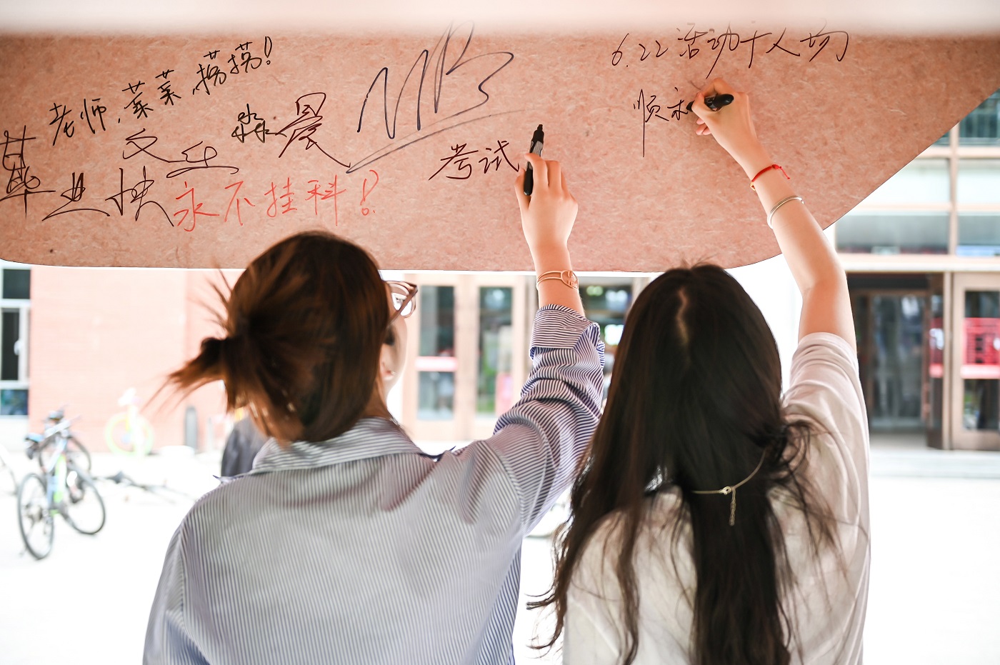 就這樣,一件件超大號(hào)的貓頭快遞框入駐到北京體育學(xué)院、燕京理工學(xué)院、常熟理工學(xué)院等各大高校,瞬間成為了校園的“顯眼包”。路過的學(xué)生們?nèi)滩蛔⊥O麓騻€(gè)卡,鉆進(jìn)貓頭框咔下一張張貓頭限定畢業(yè)照,并在上面寫下五花八門的祝福,留下搞怪、可愛的身影。