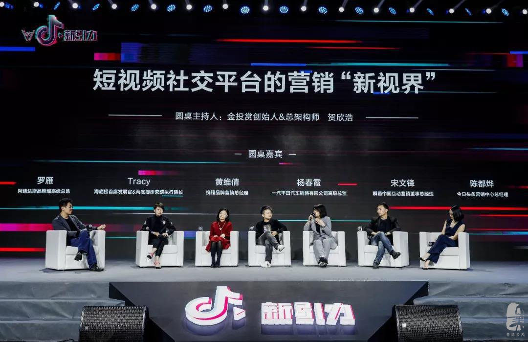 圓桌環(huán)節(jié),大會邀請了金投賞創(chuàng)始人&總架構(gòu)師賀欣浩擔(dān)任主持人,adidas neo 品牌部高級總監(jiān)羅雁、海底撈首席發(fā)展官&海底撈研究院執(zhí)行院長 Tracy、攜程品牌營銷總經(jīng)理 Lafite Huang、一汽豐田汽車銷售有限公司高級總監(jiān)楊春霞、群邑中國互動營銷董事總經(jīng)理宋文鋒、今日頭條營銷中心總經(jīng)理陳都燁作為嘉賓,分享他們在短視頻平臺上的營銷實踐。
