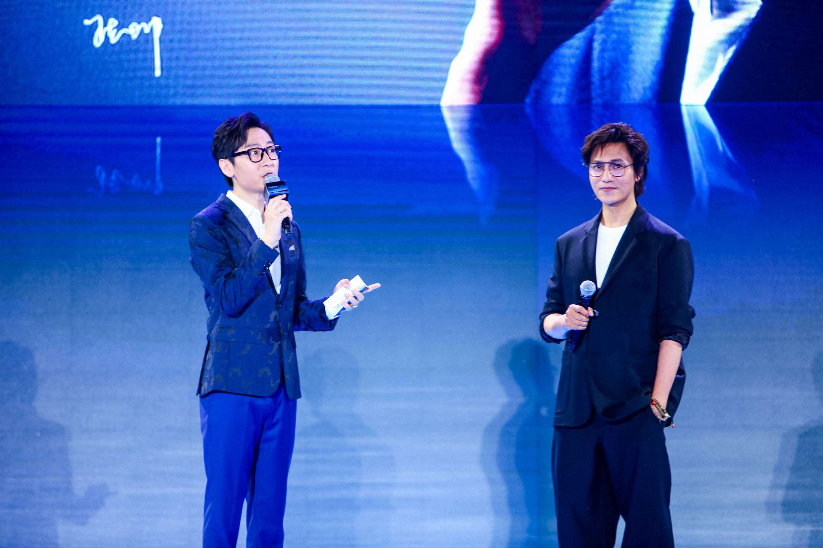 發(fā)布會現(xiàn)場,江蘇衛(wèi)視知名主持人李好與妻子郭曉敏的默契搭檔
