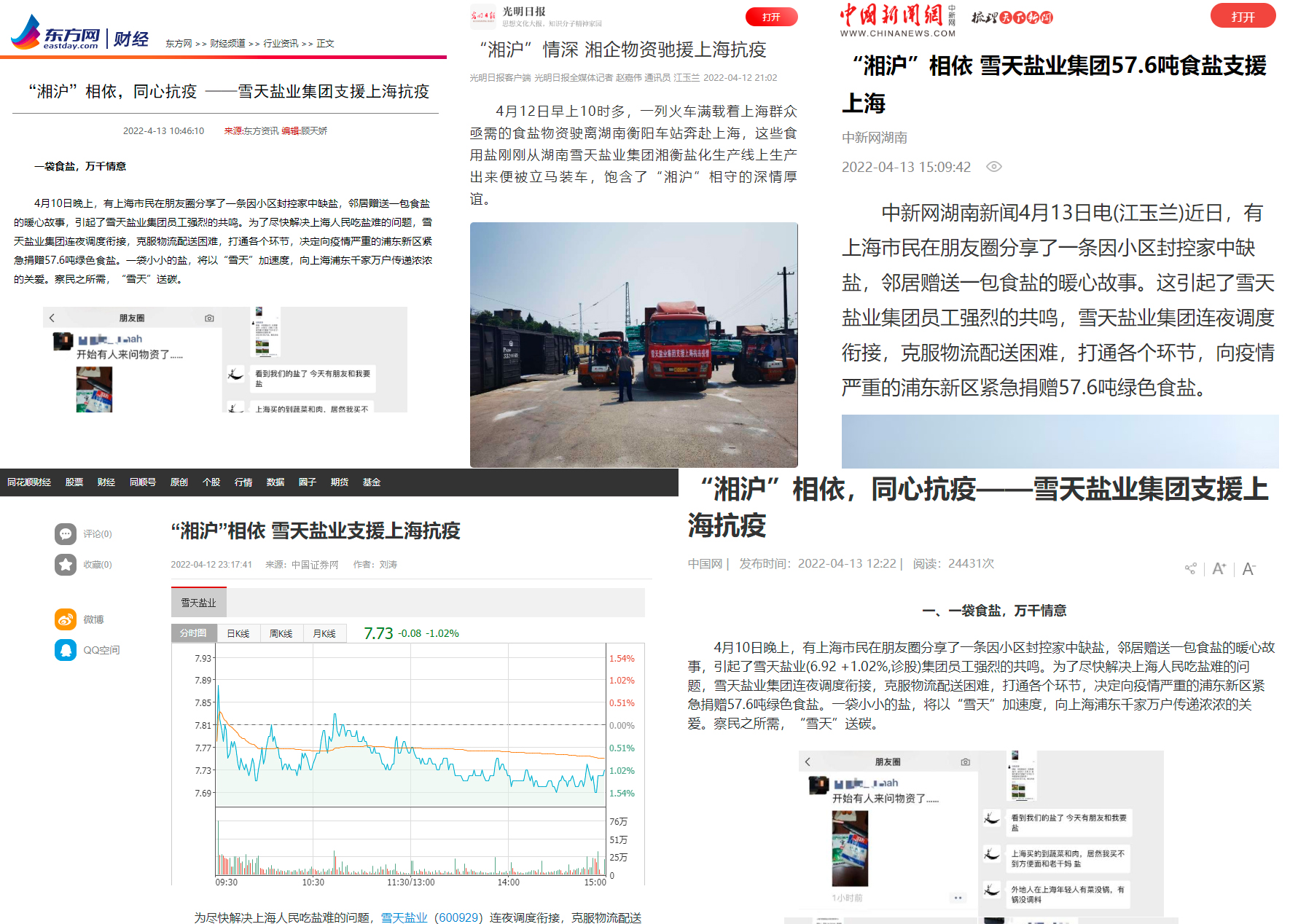 一條微信,雪天鹽業(yè)捐贈60噸食鹽