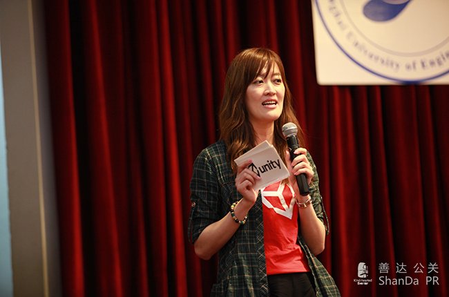 在一段由“Unity 娘”領銜的3D和2D 游戲內(nèi)容體驗的視頻后,師生們驚訝地發(fā)現(xiàn)游戲中“Unity 娘”竟然真的來到現(xiàn)場,與師生們現(xiàn)場互動,為宣講會掀開了精彩的序幕!